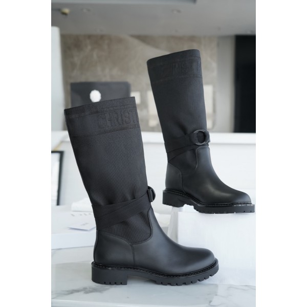 DIO* 블루종 빈티지 라이더 롱부츠 신발 표면은 회갈색 테크니컬 원단과 블랙 소가죽 핸드백에서 영감을 얻은 부츠 발목에 조절 가능한 나일론 스트랩을 매치 고무 밑창에 행운의 별 심볼