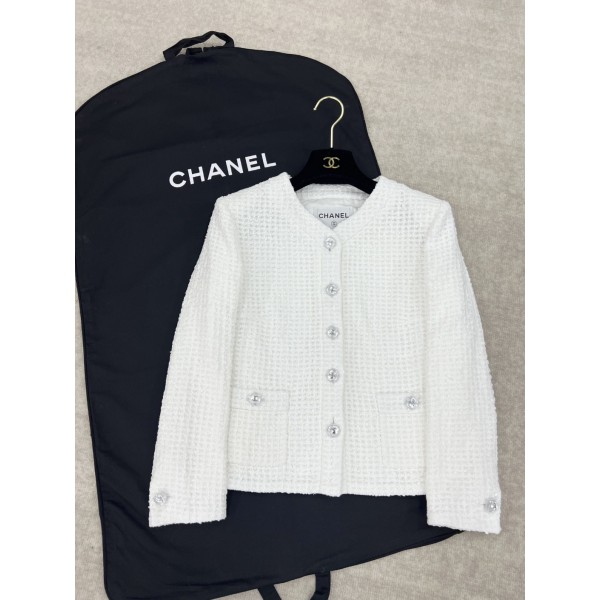 CC23 봄여름 티저 시리즈 브이넥 트윌 페도라 화이트코트 ZP46700 오리지널 커스텀 더블 C버튼 버튼 하나하나가 예쁘고 비싸요 포켓은 기계 스티치가 아닌 순수 수작업으로 바느질 디테일 하나 빠짐없이 안감:실크면