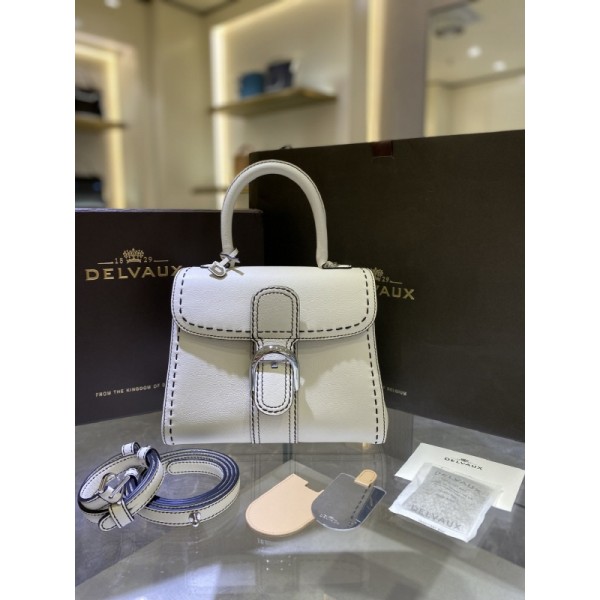 델보 백설공주 아웃 스티치 올 뉴 PM 델보 2022 봄여름 컬렉션 1958년에 탄생한 클래식 모델은 델보의 상징 RodéCalf 알갱이 송아지 가죽으로 제작된 Brillant PM 백 깔끔한 가죽 커팅과 우아하고 유려한 라인 시그니처 'D'자형 실버 버클은 Delvaux를 상징 사이즈 : 24*12*19