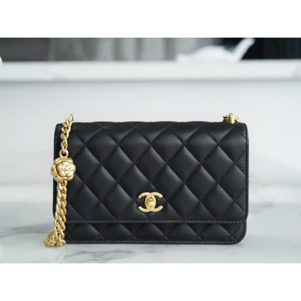 23S 봄여름 신상 카멜리아 woc 블랙 모델번호 AP3297 이번 시즌의 대히트 모델로 클래식한 woc 가방형에 "동백" 버튼을 조절할수 있고 구제된 더블C블루 디자인과 메탈릭에 심플한 솔리드골드 체인으로 클래식한 체인디자인을 깨뜨려 빈티지함이 가득하고 클래식함 사이즈: 12.3×19.2×3.5cm