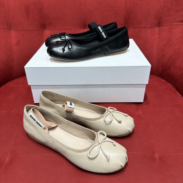 미우미우 2023 하우스 양가죽 발레화 정말 거절할 수 없는 클래식하고 로맨틱한 무스탕 신발 발도 편안하고 리본과 로고로 포인트를 준 스판끈이 여성스러움
