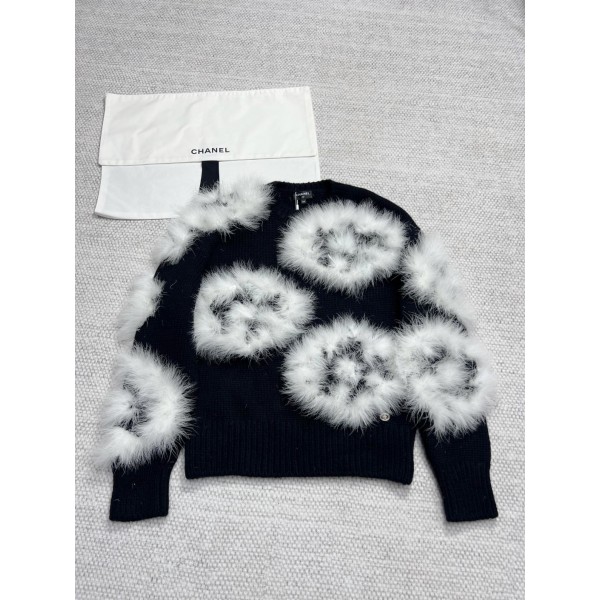 CC 23K 퍼 캐시미어 스웨터, ZP57200 이번 시즌 가장 비싼 스웨터 원판동일 카슈미르 캐시미어 실, 속칭 소프트 골드 흑색 실이지만 우리는 모두 맞춤 제작 검정색도 다른 종류의 검은색이므로 빛에 따라 다르게 보임 전체 옷을 모두 칠면조 원반 꽃으로 엮어 옷 위에 올인하여 총 12송이의 꽃을 수작업으로 완성해야 함 이 꽃에만 400위안 원가, 그래서 비싼 가치가 있음