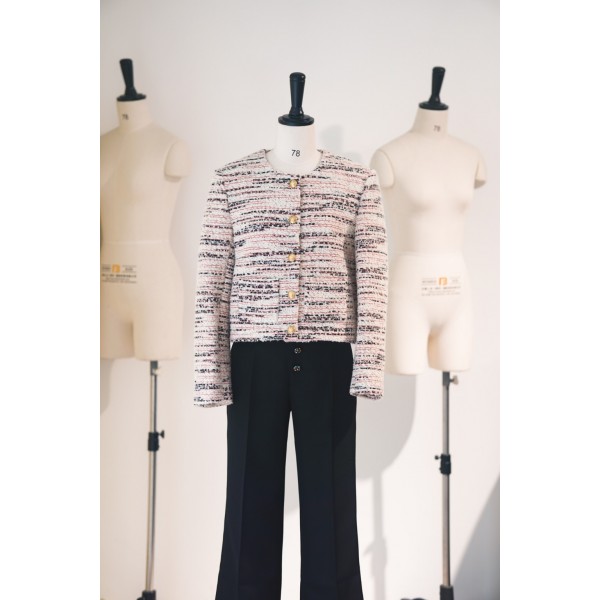 CELIN* 23 추동 개선문 트위드 스트라이프 코트 YB기사의 반복적인 바늘 자수공법의 표현된 무늬 패턴 보송보송한 느낌의 상체가 세련되고 화려하며 세로줄 개선문 금단추 포인트 안감 자카르 레터링, 숏컷 첫 번째 최고판 발매