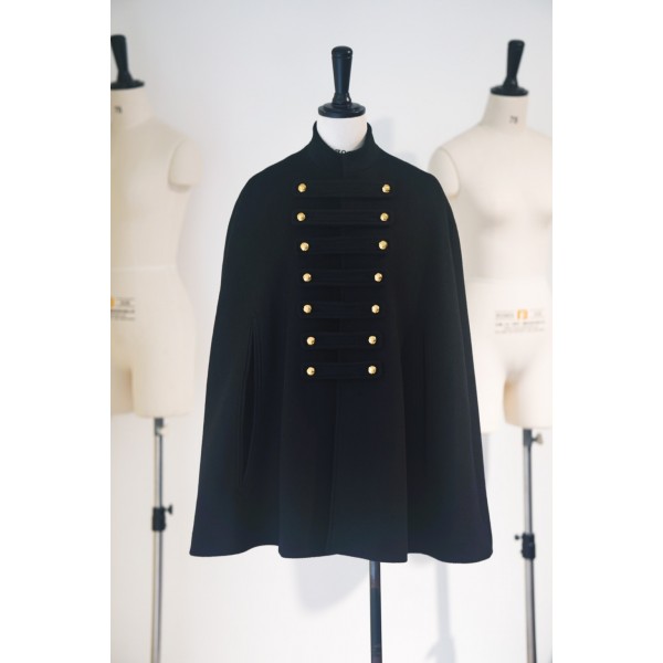 CELIN* 23 추동 개선문 골드버튼 울 망토 반하이넥 밀리터리 케이프 디자인 포인트 개선문의 풍성한 골드 버클 부드러운 울 소재의 입체적인 볼륨감 스탠드 넥 스타일과 세로 배지의 버클이 깔끔하고 블랙 골드 계열의 첫 번째 최고 버전 발매