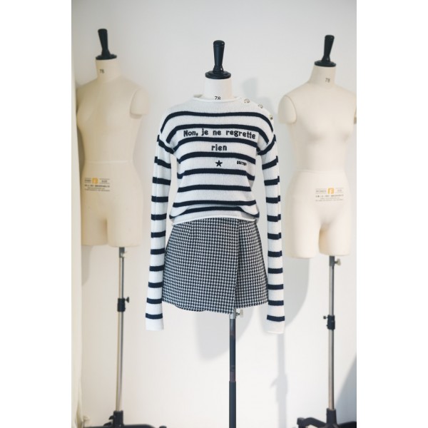 DIO* 23 추동 스트라이프 캐시미어 니트 가슴 부분의 입체적인 레터링 자수로 캐시미어 패브릭으로 정교하게 제작 라운드 네크라인 어깨 포인트와 닻 모양의 골드 버클 패턴 단추 다양한 아이템과 매치할 수 있어 사계절 모두 좋음