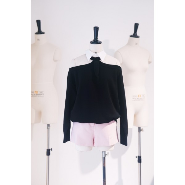VALENTIN* 23 추동 터틀넥 흑백 배색 니트 펀칭 니트 울니트 소재로 오픈숄더 구조적인 디자인 화이트 셔츠 칼라 배색 포인트 넥 타월 입체 니트 스타일 세련되고 고급스러우며 시크한 레이어드룩 최고판 발매