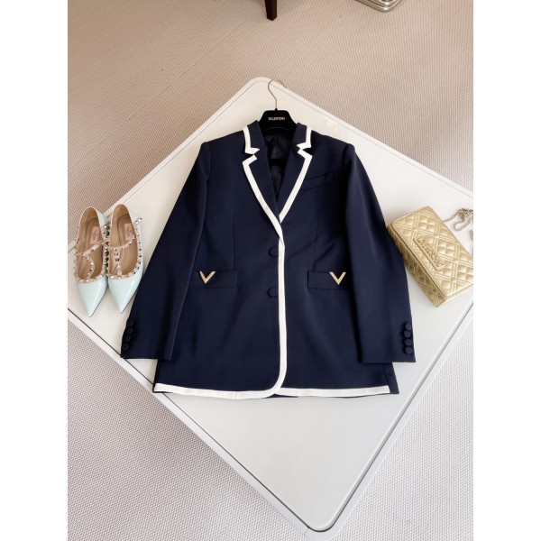 VALENTIN* 23 추동 투포켓 네이비 배색 정장 코트 복합 실크 실크 소재를 사용하여 부드러운 터치감과 축 처짐 네이비 컬러의 실루엣, 투포켓 V자 입체 포켓 포인트 상체 슬림 고급스러운 모던 최고판 발매