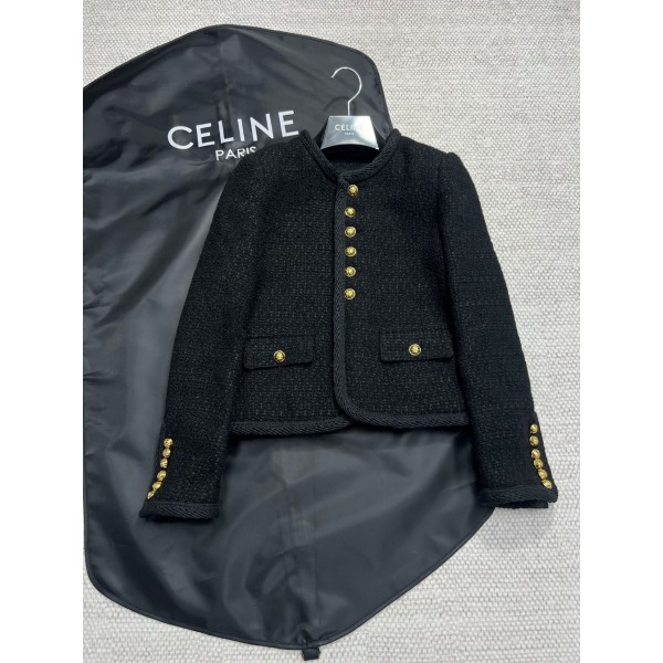 셀린느 쭈리 코트, 오리지널로 제작, ZP 29500 6알 버튼 재킷 핏, 울 78%, 면 13%, 폴리아미드 9% 아우터 가장자리에 우븐 롤업 스트랩을 포인트 배지 단추를 맞춤 제작, 레터링 자카르 안감 심플하고 시크한 직장여성의 선호 아이템