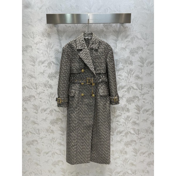 Balmain 23 가을겨울 신상 회자무늬 자카드 카라코트 본원단 벨트 여밈 포인트, 커프스 버클 포인트 멋스럽고 스타일리쉬한 회자문 자카드 원단으로 브랜드 매력 어필 1초 스틸 입체 커팅, 시크룩 분위기 올 오픈 세련된 여성스러움