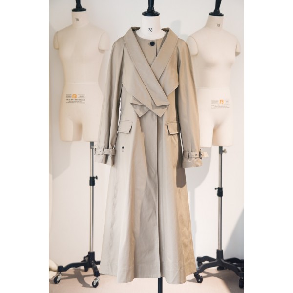 DIOR 23FW 크로스 네크라인 슬림 트렌치코트 베이지 컬러의 와타나로 정교하게 제작되었으며 D파일에서 영감을 받은 버클 클로져 칼라에 톤온톤의 레터링 벨트를 매치하여 허리라인이 돋보이며 팬츠와 힐에 쉽게 매치하여 세련되고 고급스러운 룩을 연출가능