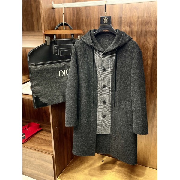 DIOR 신상 단독 디자인 패치 체크 후드 캐시미어 혼방 모직 코트 핸드메이드 울 캐시미어 코트, 무역회사 채널 럭셔리 메인 라인 공식 동시 판매, 고품질 스타일리쉬하게 작은 디테일을 고급스럽고 정교하게 만들어줌 미니멀한 미디움 롱 코트, 입체 컷팅, 고급스러운 분위기 표시화 캐시미어 31%+양모 69% 원단, 융감이 섬세하고 탄탄한 질감 후드 디자인, 가슴 패치, 양면 핸드메이드 공예 입체적인 이음새에 수작업으로 정교하게 바느질한 코트는 D사의 단연 베스트 아이템