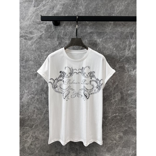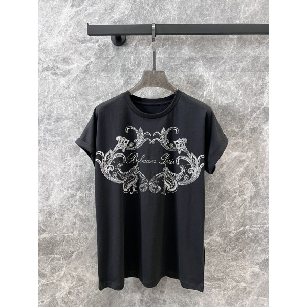 Balmain 24Ss 봄여름 신상 어깨 프린트 반팔 라운드 티셔츠 원단 밀착감이 편하고 통기성이 좋으며 박시한 라글란핏에 슬림해 보이는 블랙 앤 화이트 크래쉬프린트 고급스러운 소매 롤업 디자인이 세련되고 시크한 가슴 레터링 로고 매치 프린팅 신비로운 발질감 오버핏에 어깨 올오버핏과 함께 어깨와 어깨라인으로 연출 가능 사계절 모두 이너웨어