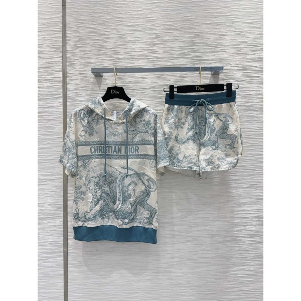 Christian Dior 2024SS 리버스 주이 프린트 정글 호랑이 패턴 세트 후드탑+작은 핫팬츠 코디 세트출품 상큼한 패션 수입원단 레이어드 신상품 따로따로 입어도 예쁜 핏감
