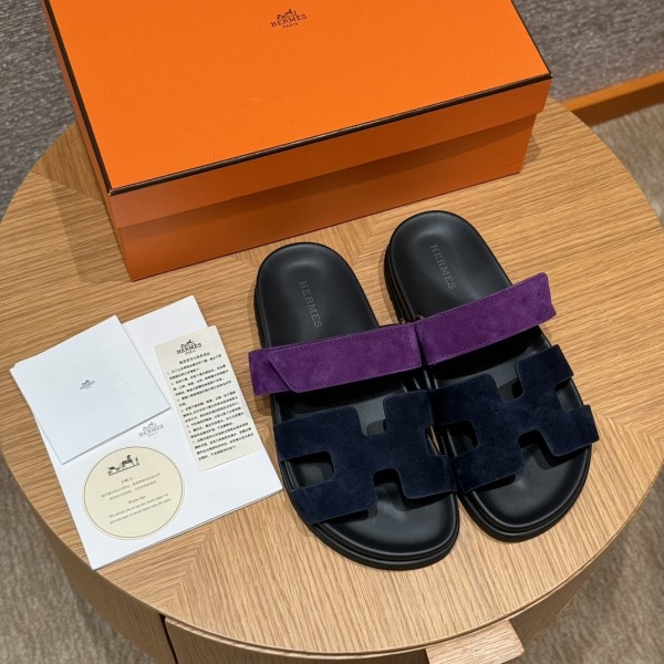 에르메스 시프레 CHYPRE SANDAL 색상: 블루, 퍼플 겉감: Upper material 스웨이드 Chamois leather 바닥재: Bottom materials 고무바닥재: Robber outsole 저희 제품은 모두 핸드메이드