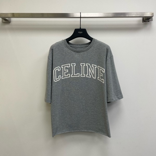 셀린느 24 신상품 이번 시즌에는 마이야르룩 레이어드룩이 필수 아이템 플리스 레터링 고급 그레이 반팔 티셔츠 수입 면 100% 원단 댄디한 느낌의 라운드넥 클래식한 스타일링으로 숏한 핏에 몸매가 날씬해 보임