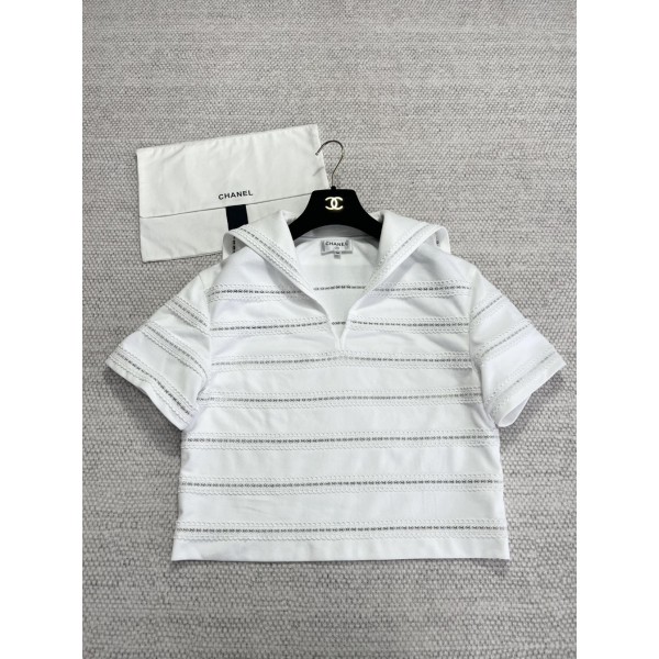 CC 24A 세일러 카라 반팔 티셔츠 이 반팔은 순면 소재에 빅 터틀넥 디자인으로 전체 옷의 포인트는 맞춤형 순면 수용성 레이스 편하고 통기성이 좋으며, LOW 레이스는 거칠고 질감이 없음
