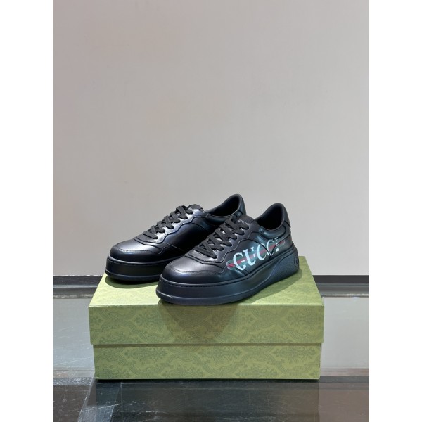 구찌 남성 통굽 스니커즈 디자인, 배색, 소재 등 3박자를 교묘하게 활용 재생 가능한 식물원료(비스코스, 목재 펄프, 바이오 폴리우레탄)최소 70% 함유된 블랙 지속 가능한 소재 데메트라로 제작 고무 밑창을 매치, 구찌 테잎 프린트 키높이 5CM 깔창으로 착용 시 아우라 업