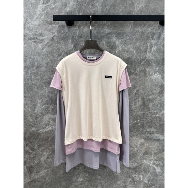 미우미우 24 FW 초가을 신상 마이크로 로고 라운드 티셔츠 쓰리피스 레이어드 하셔도 올해의 유행에 잘 어울림 달콤한 핏으로 어디에나 잘 어울림 작업 품질은 세부 사항에 따름