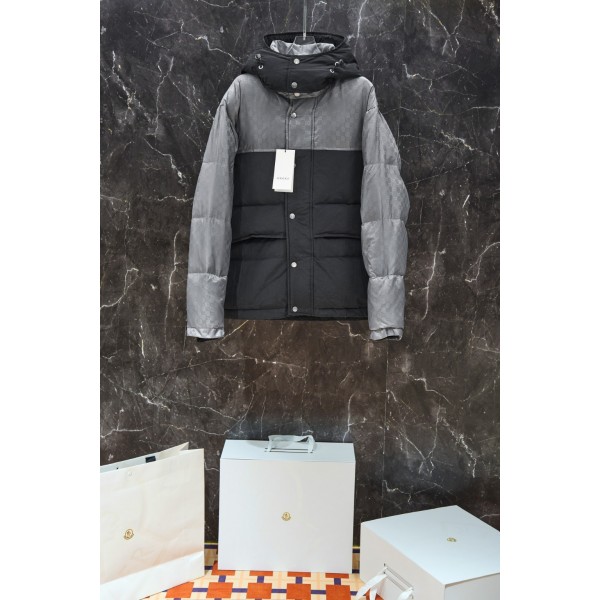 구찌 신상 더블G노화 자가드 배색 다운 남여공용 쟈가드 GG 올오버 원단 배색의 패딩 점퍼로 자카드 원단이 살짝 광택이 나는 것이 고급스러움 오리지널 커스텀 메탈 부자재, 90 캐시미어 충전 후드 탈부착, 니트 골지 방풍 소매, 완벽한 복각, 스틱 디테일
