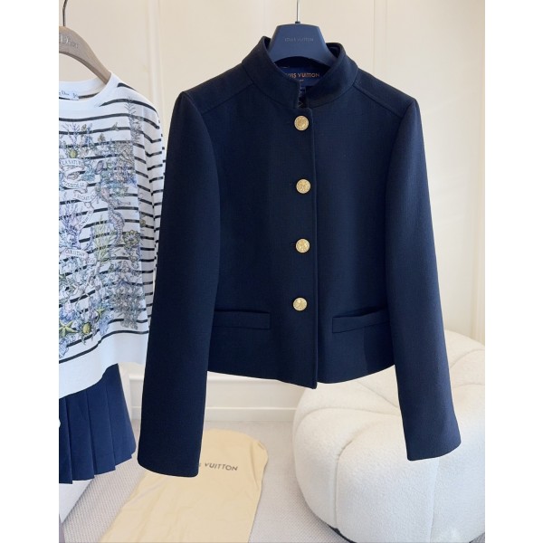 LV 2025 초봄 신상 양털 차이나 코트 맞춤 양털 원단, 부드러운 질감, 스탠드 칼라 핏 실크 꽃꽂이, 공예, 맞춤 금색 빅버튼 빈티지하고 상체의 세련된 멋스러움