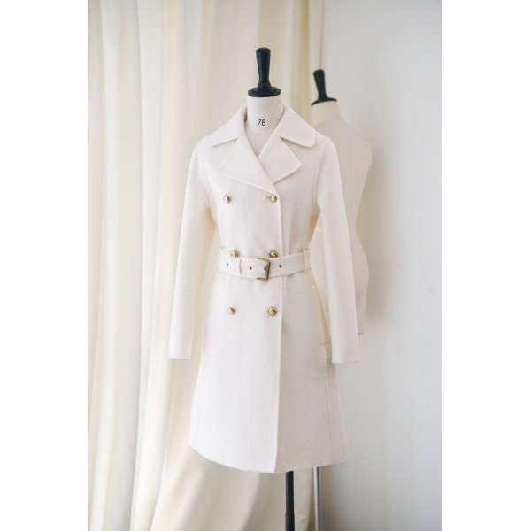 DIOR 25 알파카 골드버튼 카라 화이트골드 벨트 코트 화이트 푸미 코디 필수 아이템 맞춤 알파카 울, 캐시미어 혼방 소프트 모직 소재 허리 핏으로 바디 커버력이 뛰어나며 비둘기알 레터링 골드 버클이 포인트로 우아하고 스타일리쉬한 룩을 연출할 수 있음 최고 퀄리티 발매