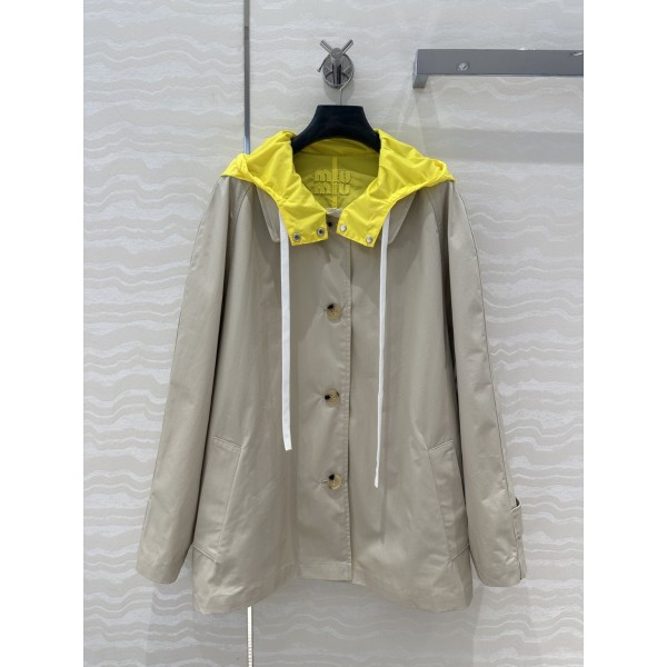 미우미우 25 이른 봄 컬렉션 신상품 양면 바람막이 재킷 숏 트렌치코트 스타일리쉬한 배색 코디 메모리 후드 바람막이 칼라 재킷과 결합된 스포티 소녀 스타일 커스텀 원단으로 가볍고 편안하며 비침이 있는 느낌 최고 순수 수작업으로 오픈아이 디자인 완벽한 제작 품질로 디테일을 보세요 36사이즈 가슴둘레122 기장74