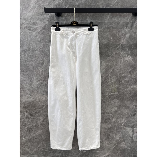 샤넬 25p 봄 신상 허리 로고 데님 팬츠 이 청바지는 만들기 어려운 옷 청바지 전체가 흰색으로 보이지만 세 가지 워싱 과정을 거쳐야 하기 때문에 화이트 컬러 안에 약간의 빈티지함이 있는 올해의 팬츠라고 할 수 있음