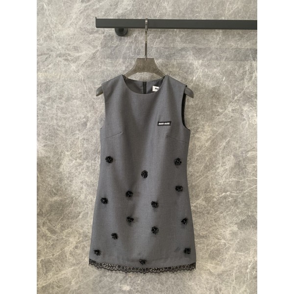 미우미우 25 봄여름 신상 비즈 플라워 패치 레이스 나시 원피스 허리라인을 잡아주어 날씬해 보이고 포용력이 강한 슬립온의 필수 아이템 하나만으로 코디하기 쉽고 단품으로 코디하기에도 일품 우아하고 대범하게 스타일링 하셔도 무난함
