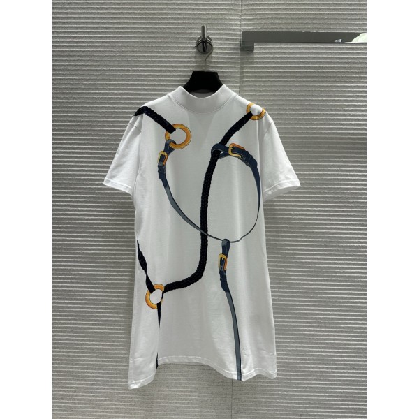에르메스 신상 반폴라 롱 반팔 티셔츠 스커트 루즈하고 캐주얼한 느낌의 원피스 강추 Effet kaleidoscope 컬렉션 패턴 체인 로프 프린트 풀라인 패턴 순면 100% 소재감 짱 완벽한 배색 풀라인 프린팅이 고급스러워요 36사이즈 어깨너비41 가슴둘레98 총장79