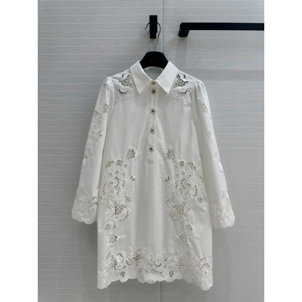 D&G 25 신상 긴팔 셔츠 스커트 헤비메탈 자수 펀칭 코튼 소재 강력 추천 박시한 A라인 컷팅 셔링 핏으로 날씬해 보여요 우아하고 화려함 그 자체 S사이즈 어깨35 가슴94 스커트길이83 끈가슴둘레86