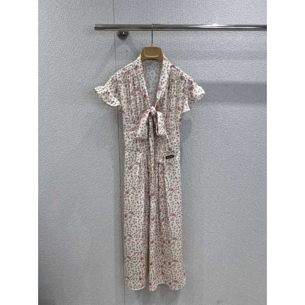 미우미우 25 신상 플라워 프린트 브이넥 롱 원피스 전체적으로 분위기 있고 톤브이넥 디자인으로 날씬해 보이는 상의가 돋보이는 로맨틱하면서도 시크한 배색 빈티지한 감각으로 세련됨