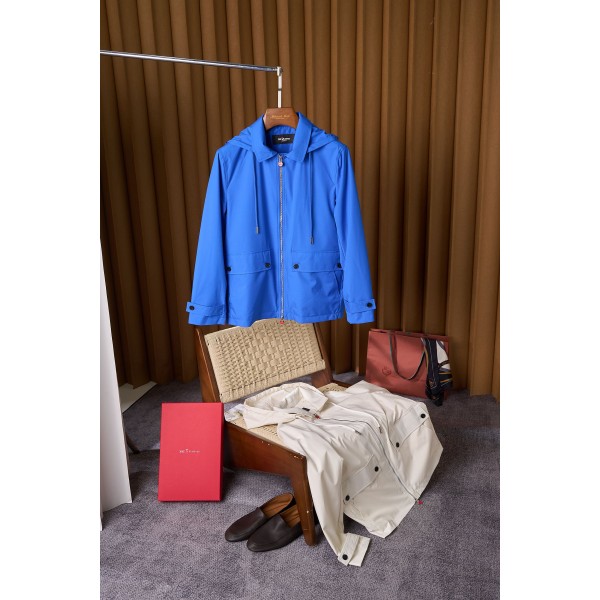 키톤 후드 탈부착이 가능한 트렌치코트 소재 선택에 있어 Kiton은 변함없이 높은 품질의 기준을 유지 고품질의 원단을 엄선하여 부드럽고 편안한 촉감을 제공하며 통기성과 방풍성이 뛰어나 착용하는 동안 항상 보송보송하고 자유로운 상태를 유지할 수 있음 정교한 커팅과 제작 공정은 재킷의 모든 세부 사항을 완벽하게 보장 네크라인 밀착감부터 소매 끝단의 클로징 디자인까지 퀄리티에 대한 키톤의 집요한 추구를 보여줌