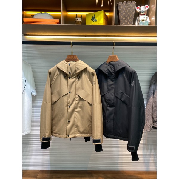 LP 25 신상 테크니컬 방수 섬유 야상 기능성 후드 다운 점퍼 남성 미러 로고 프린트 래글런 집업 점퍼 무역회사 채널 희소, 동시 홈페이지 판매 맞춤형 기술 섬유 방수 원단을 사용하여 밀도가 매우 높아 마치 촘촘히 짜여진 방호망처럼 외부의 비바람과 긁힘을 확실히 막아줌 일체형 스트링 조절 캡포켓은 필요에 따라 간편하게 캡포켓의 크기와 밴딩 정도를 조절할 수 있음 여밈은 사중단추 지퍼로 이중으로 여닫는 디자인으로 옷의 밀폐성을 높여 찬바람이 들어오지 않게 해주며 여닫을 때도 편리함 벨크로 바람막이 소매와 밑단 스트링 버클 디자인은 이 외투의 아웃도어 기능을 더욱 향상시킴 52사이즈: 어깨소매기장78cm-가슴둘레126cm-총장72cm