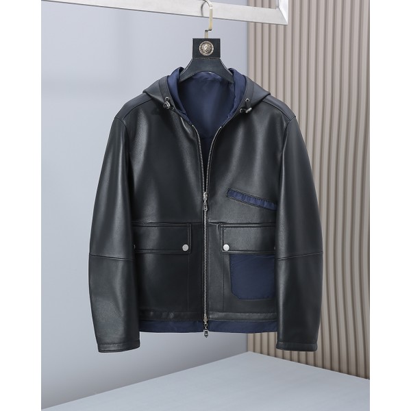 에르메스 25 신상 남성 양면 가죽 재킷 중량감 있는 프리미엄 제품, 공식 동시 판매 화보집 고빈도 코디로 스타급 아이템 이 양가죽 재킷은 앞면은 가죽 옷, 안쪽은 천 두 가지 옷처럼 절대적으로 실속 있고 디테일과 품질을 강조함