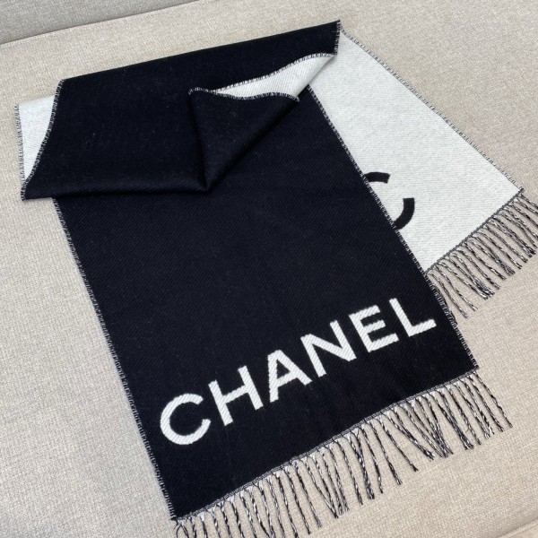 샤넬 25k 흑백 더블C숄 머플러 흑백 배색이 너무 클래식해요 가염과 달콤한 양옆에 각각 샤이니한 로고타입으로 세련된 수술테잎의 이중적인 운치가 돋보이는 절제된 아름다움 소재: 코튼 울 55% + 캐시미어 45% size: 168.4 x 44.6cm