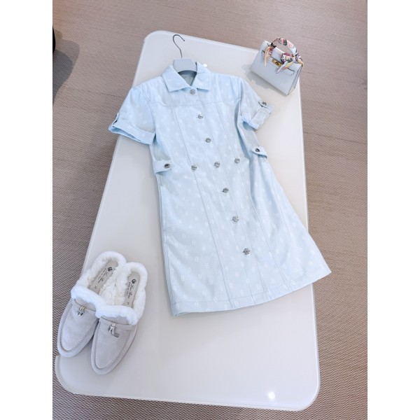 HERMES 25S 데님 민트 조거 원피스 절묘하게 정염된 민트 블루 계열로 깔끔하고 아담하며 연한 블루 컬러 위에 브랜드 화이트 돼지코 프린트 로고 터틀넥 조임이 고급스럽고 절제되면서도 젊고 발랄하여 초가을에 잘 어울리는 아이템