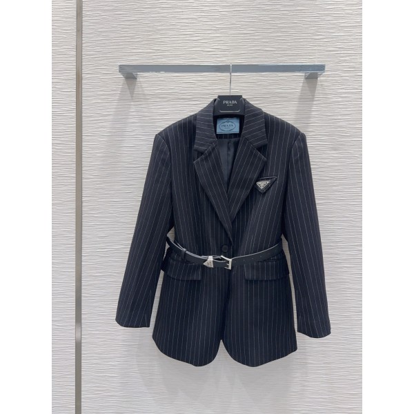 프라다 25 신상 깔끔하고 고급스러운 스트라이프 정장 코트 고급스러운 수입 텍스처 깔끔하고 품격있는 필수 아이템