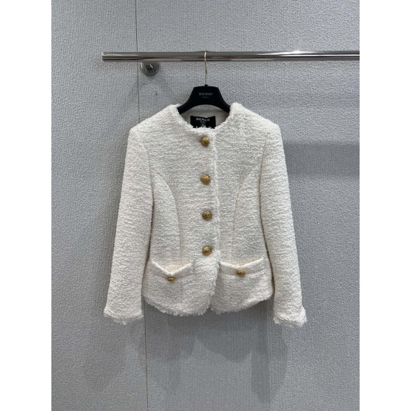 발망 25 초가을 신상 금단추 슬림핏 트위드 재킷 배색 톤 다운되고 빈티지함 출근길이나 모임까지 만능 깔끔한 디테일이 돋보이는 맞춤 원단 텍스처