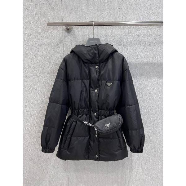 프라다 25 신상 개미허리 패딩 점퍼 재생 나일론 원단과 탈부착 가능한 허리로 아이코닉한 삼각형 모양의 3D 포켓이 후드형 패딩 점퍼에 새로운 격식을 더해줌 안감에는 국표 90의 부드러운 구스다운 라이닝으로 따뜻하게 케어해 주며 몸체는 Re-Nylon 재생 나일론 원단으로 탄력 있는 스트랩 밑단이 허리 라인을 살려주고 칼라 옆단추는 오픈 클로져로 포인트