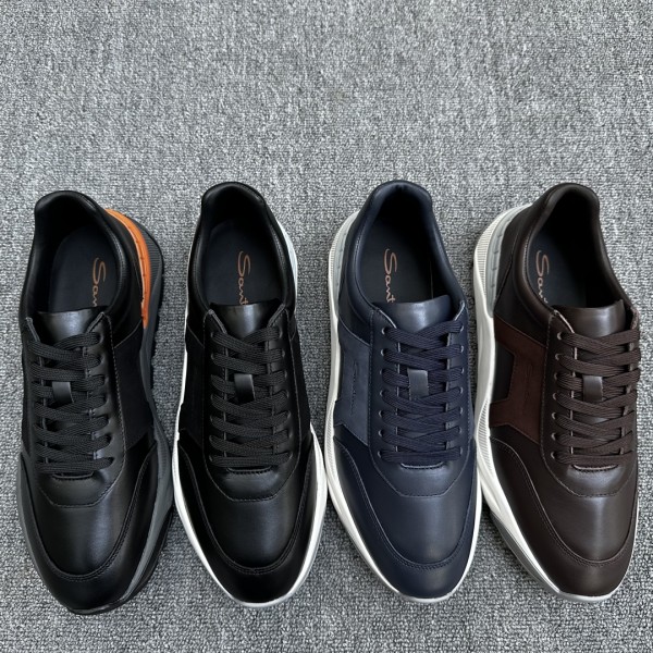산토니 이태리 남성 수제 송아지 가죽 스니커즈 신발의 앞코 부분은 클래식한 두 가지 디자인 컨셉으로 베젤 부분은 모두 이태리 오일 엣지 공법으로 처리되어 360도 보풀이 없고 고탄망 부네리 디자인 환경 친화적이면서도 접착제를 사용하지 않는 것 수입 립 엠보싱 송아지 가죽에 고광택 반모 소가죽으로 가죽 뒷면에서 올라오면 모공이 또렷하게 보이는 소재 송아지 안감으로 미끄러지지 않고 색이 바래지 않음 밑창은 ip 밑창과 tpu 원판의 콤비네이션으로 가볍고 편안한 발놀림, 브랜드 전용 틀 열림 발바닥에 깔창 중앙에 고탄지 솜이 있어 발이 가벼움
