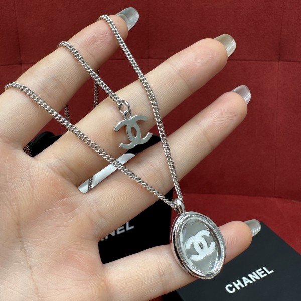 샤넬 25s 타원형 미러 목걸이 반짝반짝 빛나고 촉촉하고 컬러감이 물씬 풍기는 은백색 계열로 정말 잘 어울림 깔끔하고 매끄러운 라인, 화이트 에나멜 듀얼 C logo 요철 미러링, 세련되면서도 보기 좋아요 아주 특색 있는 고급스러움