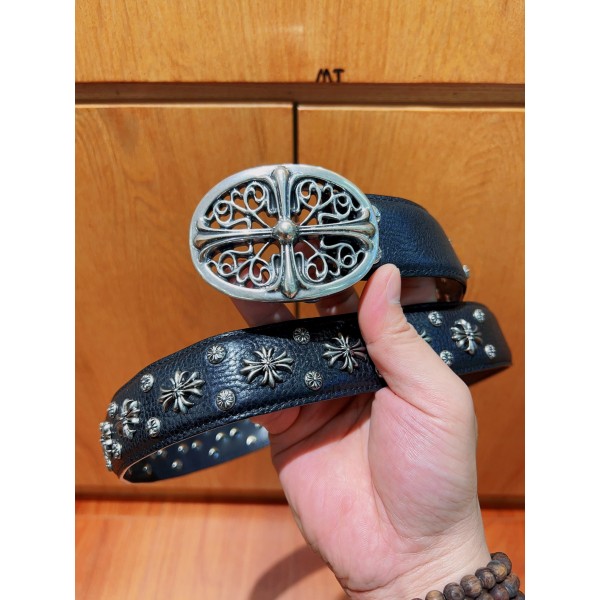구매대행급 크롬하츠 벨트 폭 3.8cm 클래식 지킴이 십자가와 멀티 메탈 블랙 헤드 소가죽 밴드 고딕, 록, 펑크, 스트리트 힙합이 어우러진 스타일로 남녀공용 오리지널 유랍 소가죽으로 신주에 실버 925도금하여 제작