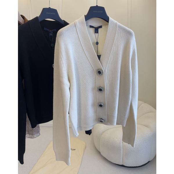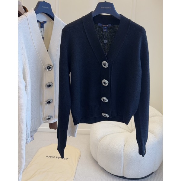 LV 2025 새로운 핸드메이드 드릴 니트 가디건 캐시미어 97% + 울 3% 혼방, 정염사 순수 핸드메이드로 만들어진 빅 드릴 유난히 조화롭고 특색있고 세련되었으며 브이넥 장식으로 목선을 최적화하여 어디에 매치해도 예쁜 스타일