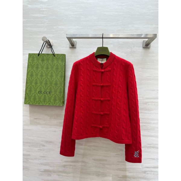구찌 25 신상 차이나 자수 트위스트 버튼 가디건 캐시미어 100% 텍스쳐는 부드럽고 편안하며 플랩 버클 디자인 소매 뱀띠 해 맞춤 자수 세련되고 고급스러운 고품격 M사이즈: 어깨너비38, 가슴둘레96, 총장51