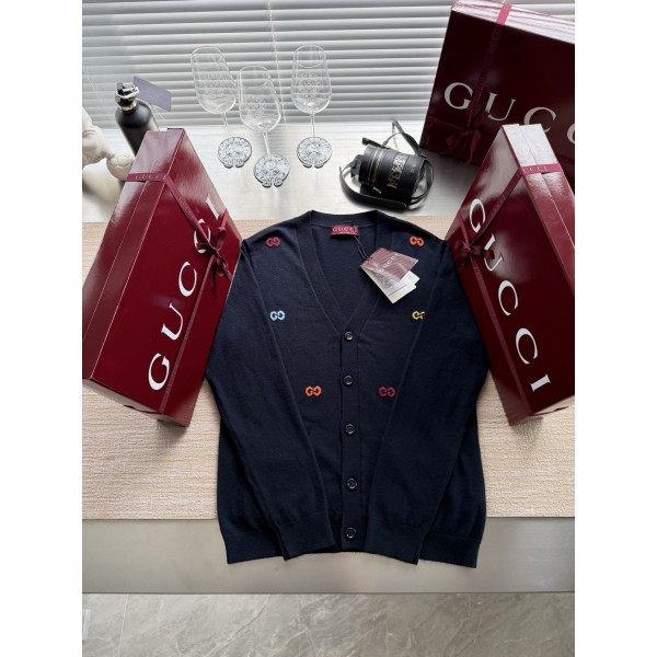 구찌 2025 FW 그라데이션 자카드 니트 가디건 ZP 16800 구매 분해 제작 캐시미어 원단 맞춤 제작, 캐시미어 100% 실 100% 제작 앞판 장식 더블 G 그라데이션 자카드 로고 자카드 원단 골지 브이넥 소매 밑단 맞춤, 초밀도로 부분 짜임 진짜 1:1 재현