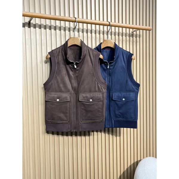 브루넬로쿠치넬리 25 신상 남성 하이넥 베스트 슬리브리스 민소매 스타일, 차이나 카라 디자인 소재 성분은 폴리에스터 100%로 부드럽고 보온성이 있으며 가볍다는 특징이 있어 편안한 착용감을 제공함 니트 안감 칼라로 목선에 밀착되어 보온성과 함께 목선을 보정 지퍼 헤드에 BC 로고가 있어 디테일이 브랜드 정체성을 드러냄 지퍼 품질이 높고 매끄럽고 내구성이 좋음 52사이즈 기장68 어깨넓이44 가슴둘레114cm