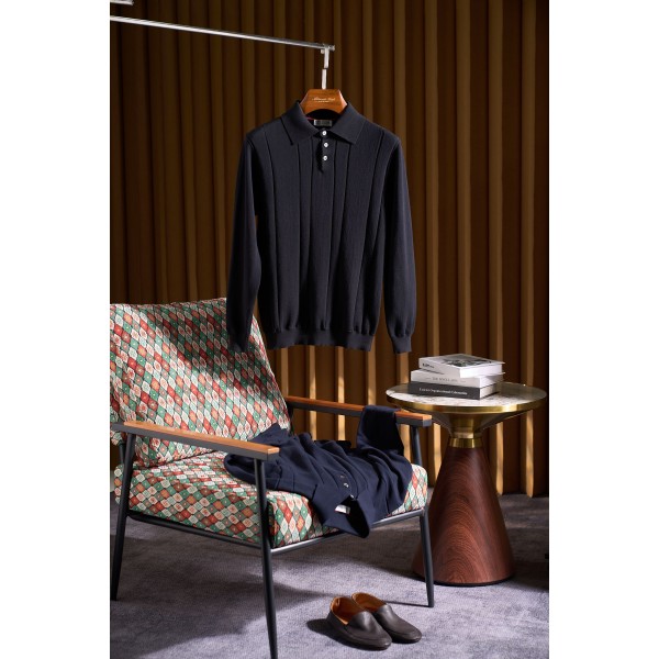 BC 클래식 니트 폴로 셔츠 최고급 면 원단을 엄선하여 부드러운 촉감과 뛰어난 통기성을 자랑하는 옷장 필수 아이템 클래식한 폴로넥 디자인에 세련된 트리플 버클을 매치 옷깃과 소맷부리의 섬세한 스티치 독특한 레드 컬러의 임팩트 디자인 세로 스트라이프 디자인으로 몸매하고 우아함과 여유를 더했음