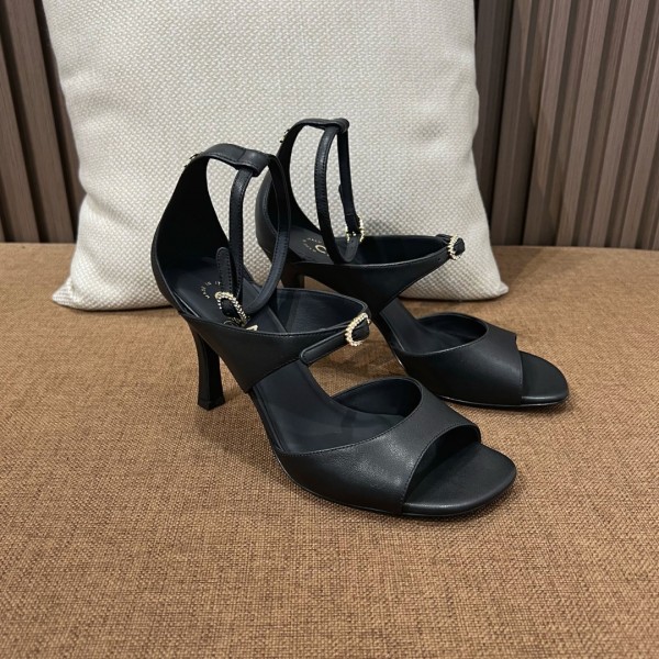 Chanel 25B 신상 일자 스트랩 메리제인 힐 샌들 바닥은 수입 블랙 스웨이드로 질감이 부드러움 새끼 양가죽 안감은 통풍이 잘 됨 커스텀 큐빅 버클로 광택이 좋음 이태리 수입 A급 리얼 가죽창 굽: 8.5cm