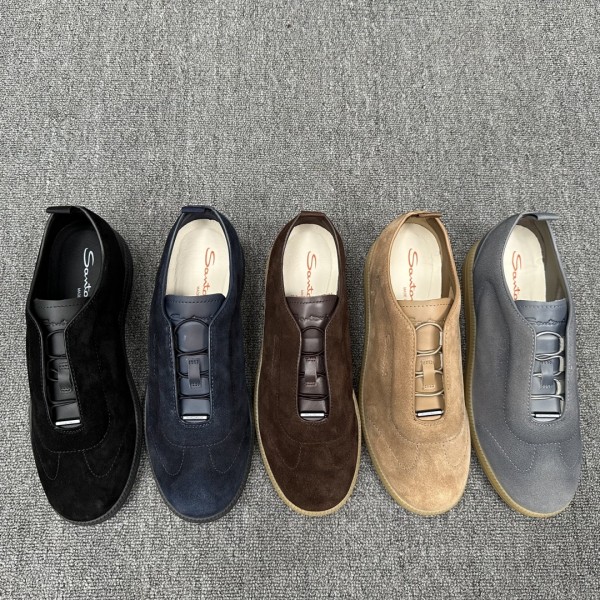 산토니 이태리 남성 수제 송아지 가죽 스니커즈 신발 표면은 고광택 소가죽 반스웨이드 변색 효과 사이드 엠보 브랜드 로고, 히든 밴딩 스트랩 베젤 부분은 이태리 프릴 처리로 360도 보풀 없이 시각적으로 톤온톤 송아지 가죽 안감 디자인 고무 내마모성 바닥