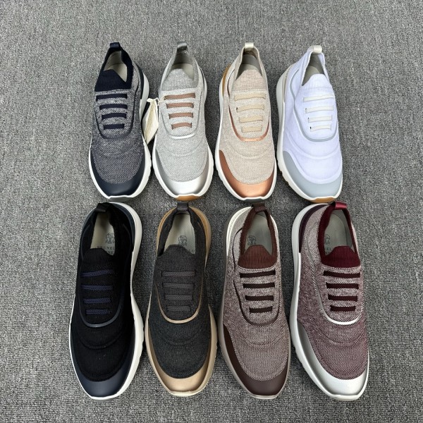Brunello Cucinelli 니트 스니커즈 진귀한 실이 새로운 스니커즈 디자인에 영감을 주었으며 면 전체 니트 슈즈가 클래식한 스타일을 모던하게 해석하였음 세미 폴리쉬한 송아지 가죽 스트랩이 얇고 편안한 니트 소재에 돋보이며 선명한 소재 대비로 세련됨을 보여줌